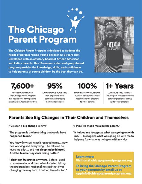 Parents, group leaders, and deborah gross, developer of the chicago parent program, share testimonials around the impact the chicago parent program has had o. The fidelity checklist scales are available in the chicago parent program manual. The program is rated promising.